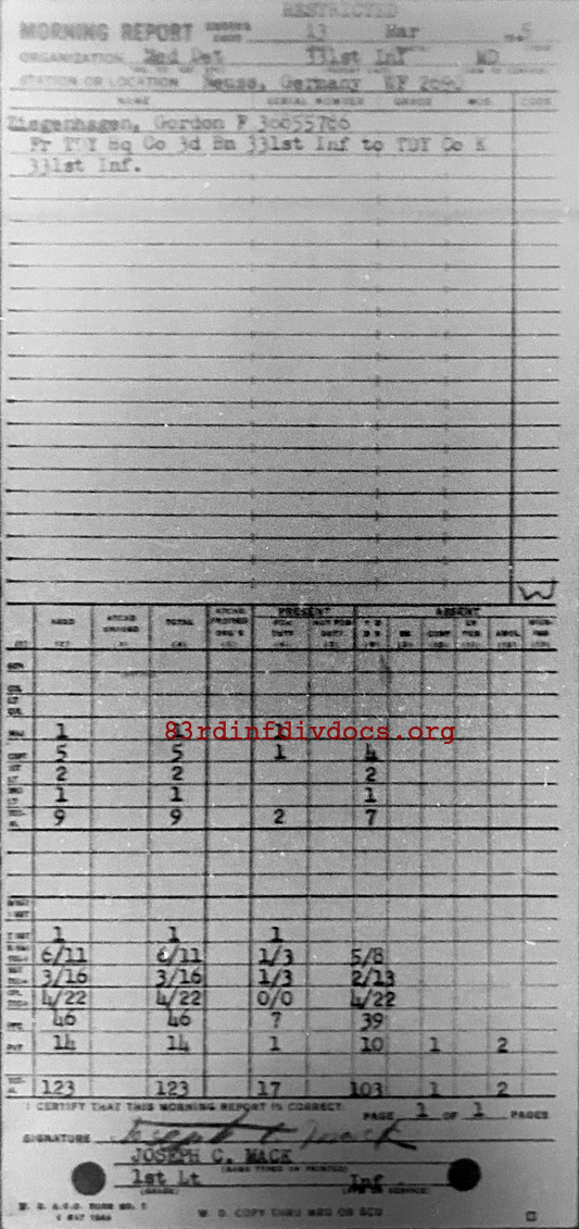 Morning report MEDDET/331 for March 13, 1945