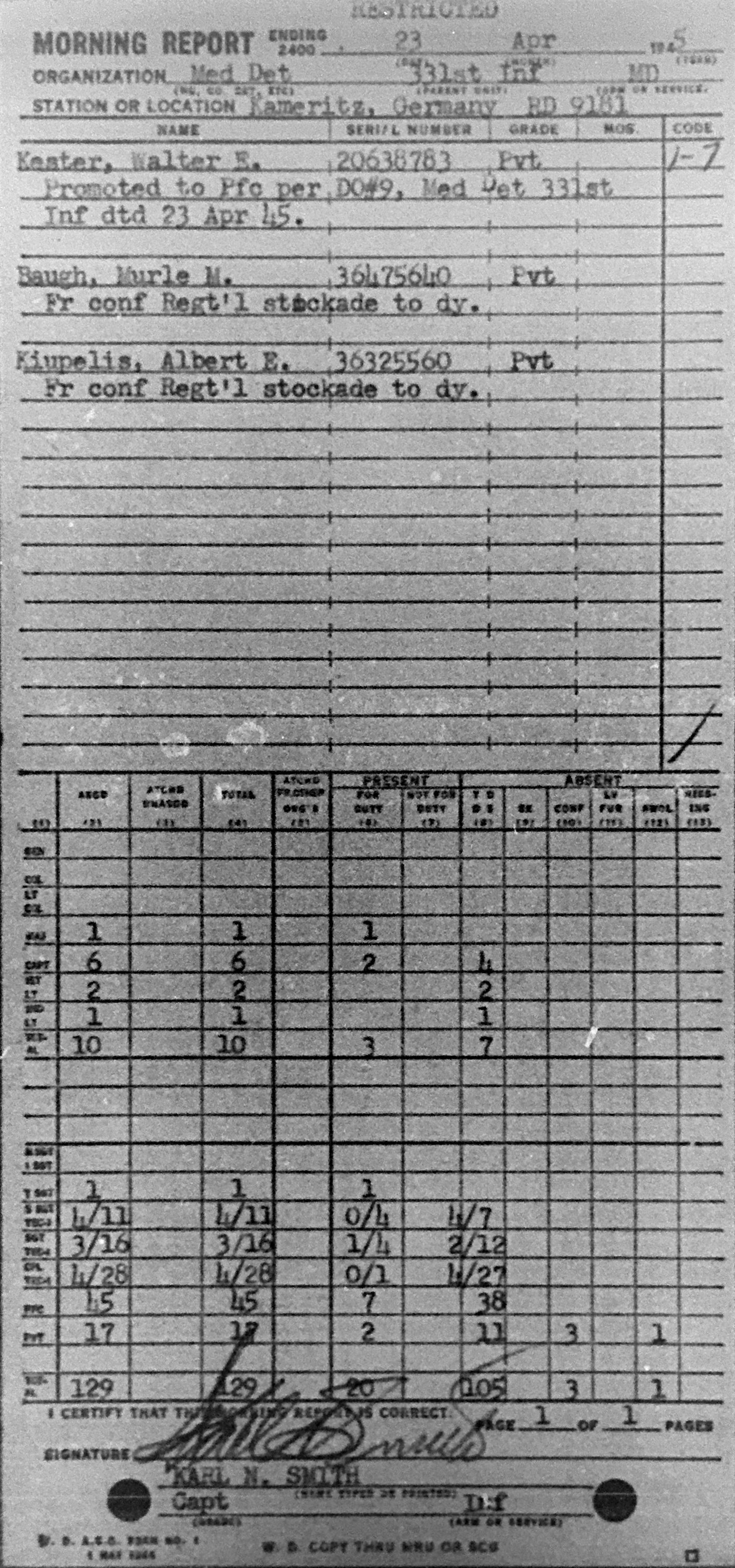 Morning report MEDDET/331 for April 23, 1945