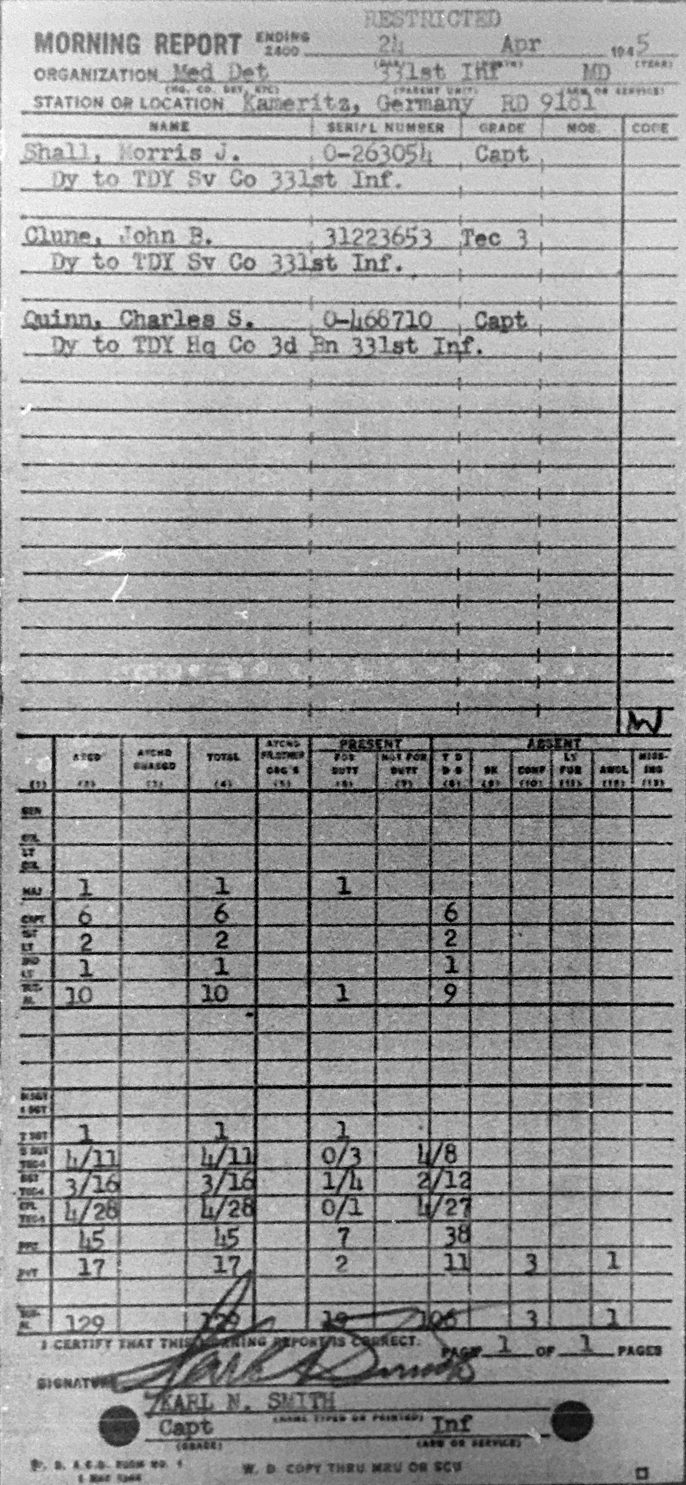 Morning report MEDDET/331 for April 24, 1945