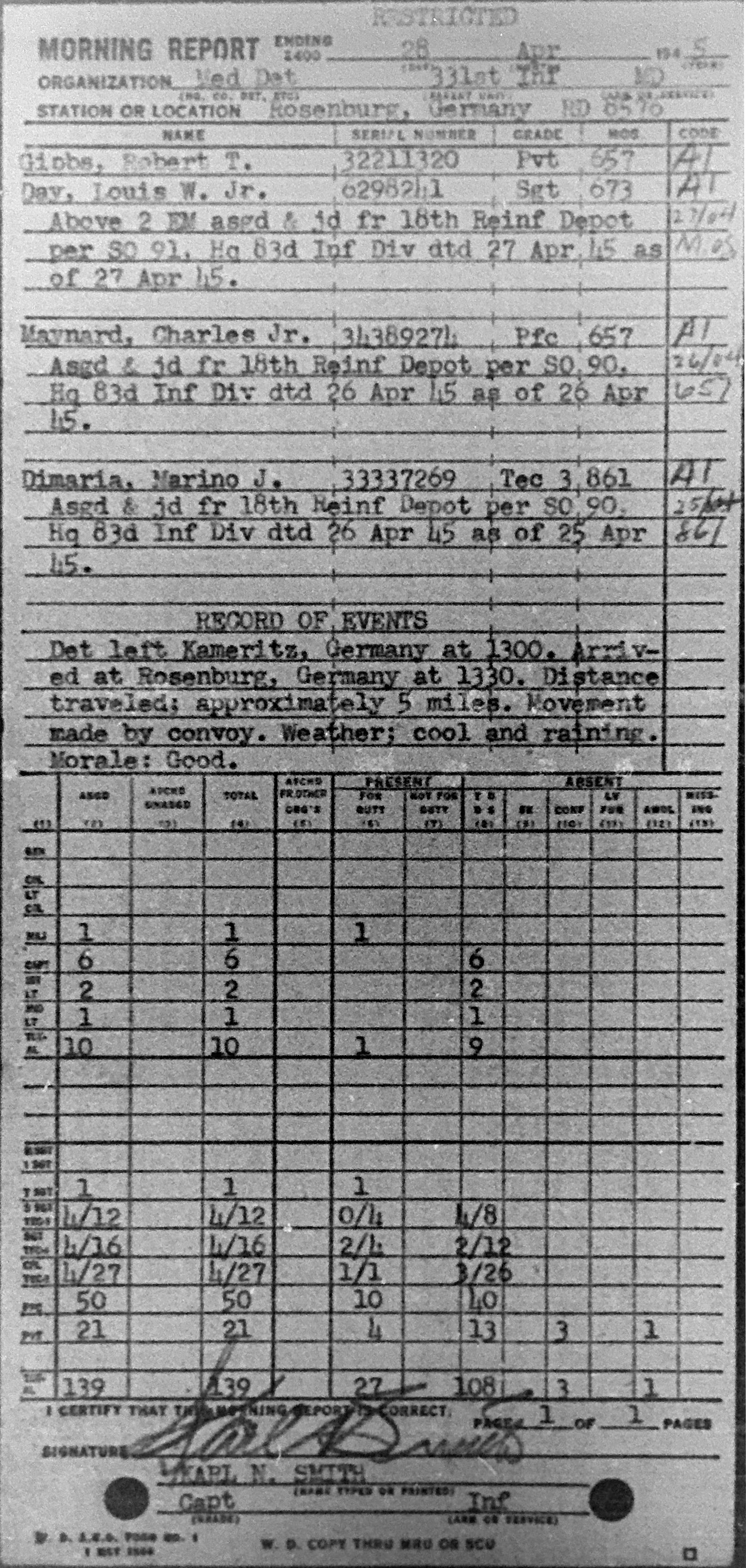Morning report MEDDET/331 for April 28, 1945