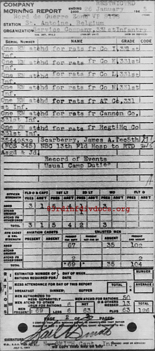 Morning report SERCO/331 for January 26, 1945