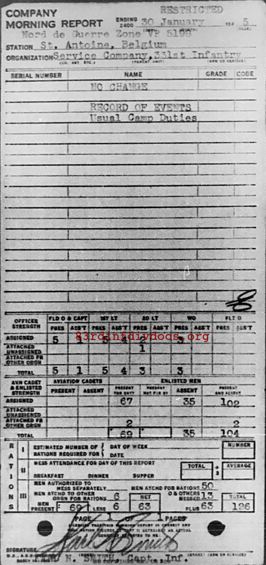 Morning report SERCO/331 for January 30, 1945