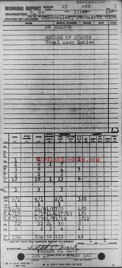 Morning report SERCO/331 for February 27, 1945