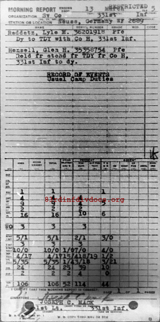 Morning report SERCO/331 for March 13, 1945