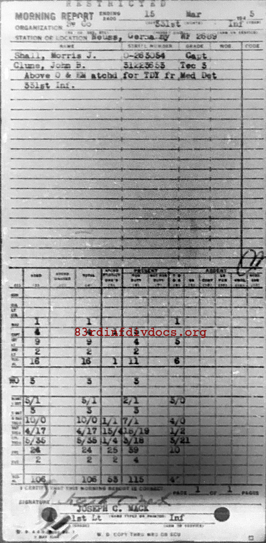 Morning report SERCO/331 for March 15, 1945