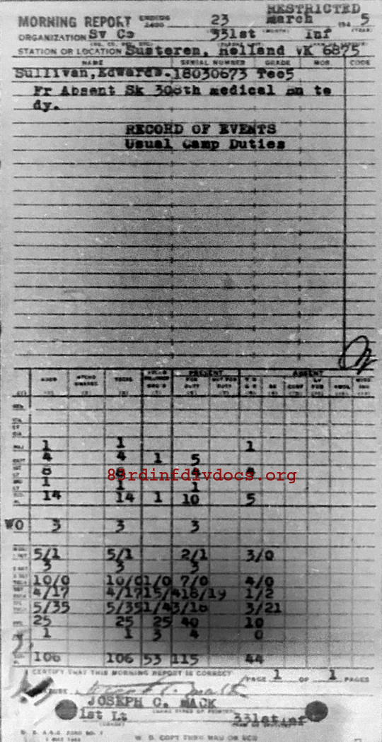 Morning report SERCO/331 for March 23, 1945