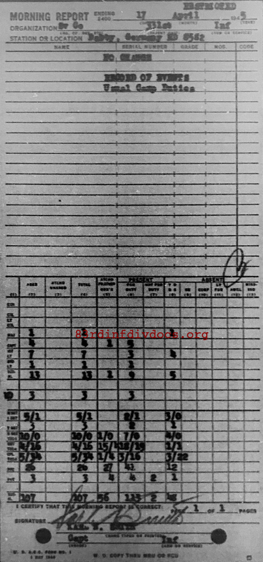 Morning report SERCO/331 for April 17, 1945