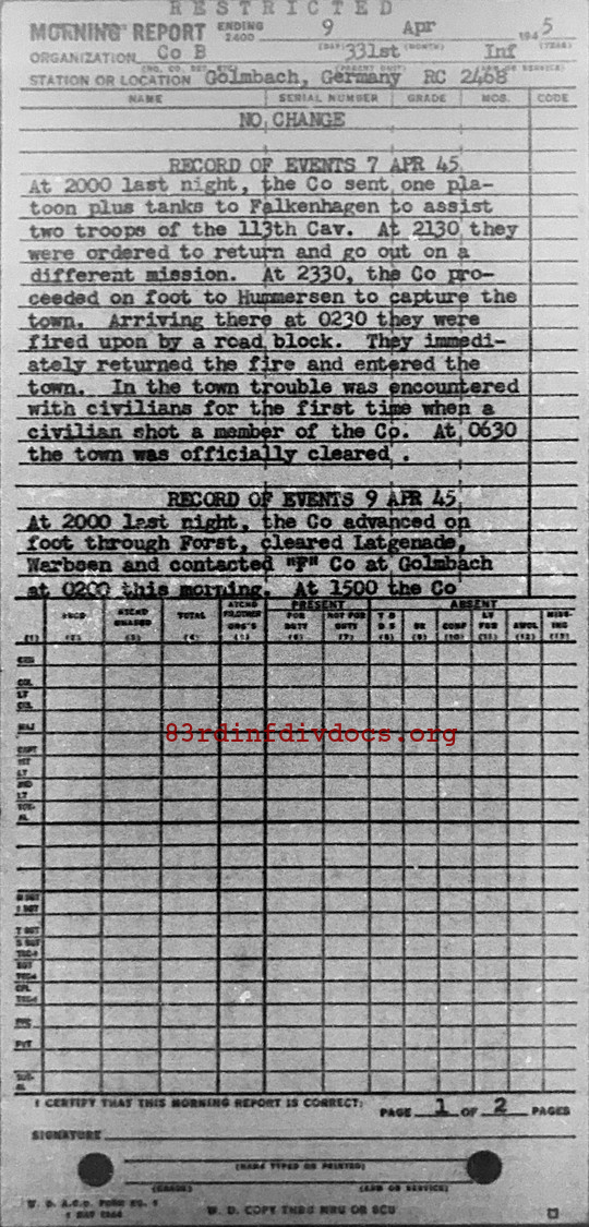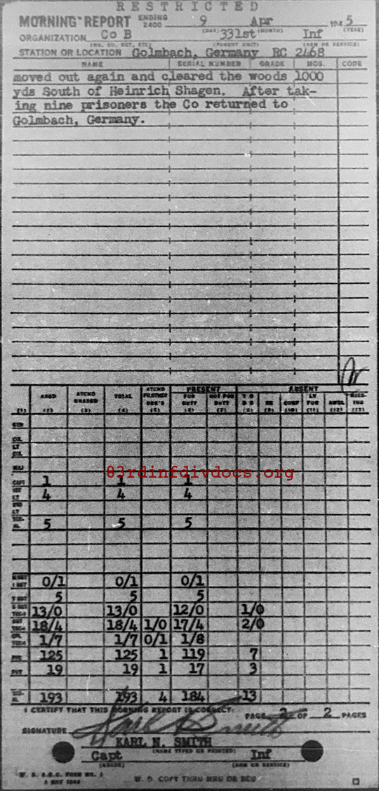 Morning report B/331 for April 9, 1945