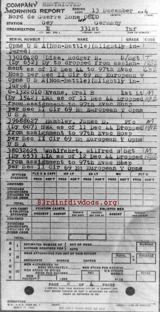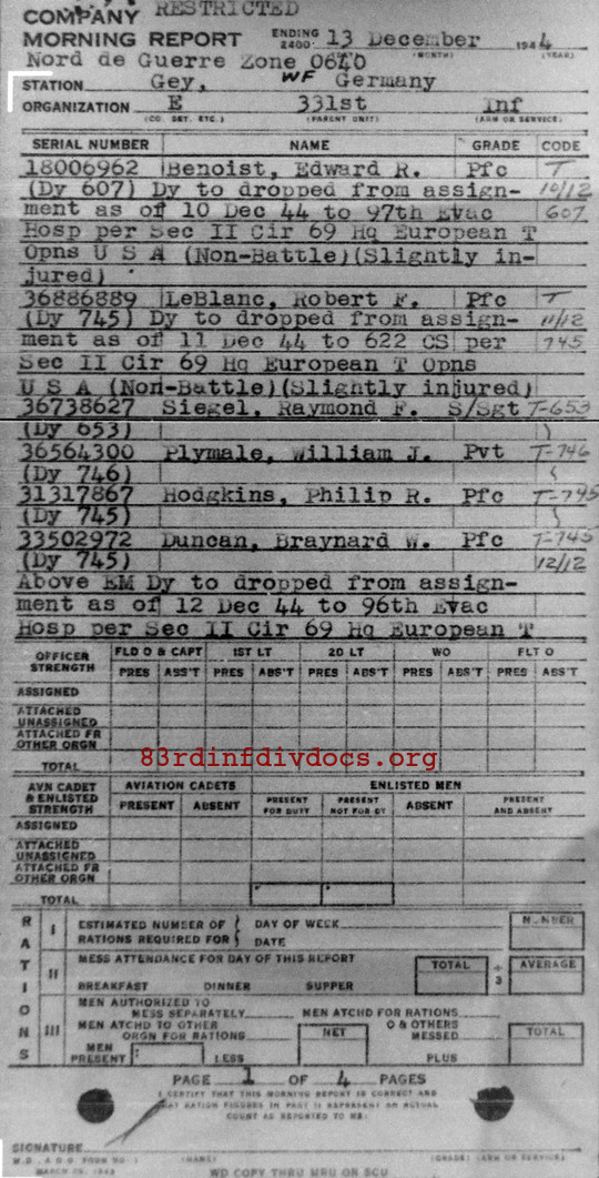 Morning report E/331 for December 13, 1944