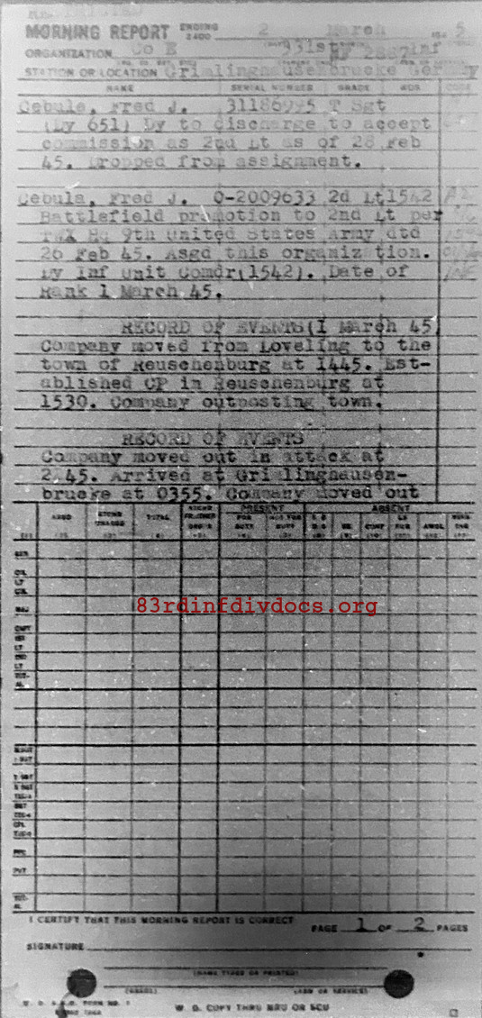 Morning report E/331 for March 2, 1945