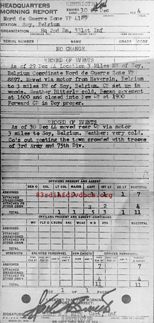 Morning report HQ2BN/331 for December 30, 1944