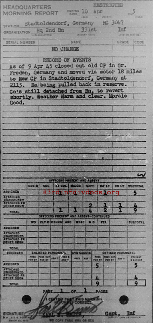 Morning report HQ2BN/331 for April 10, 1945