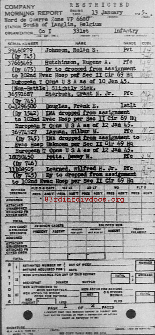 Morning report I/331 for January 13, 1945