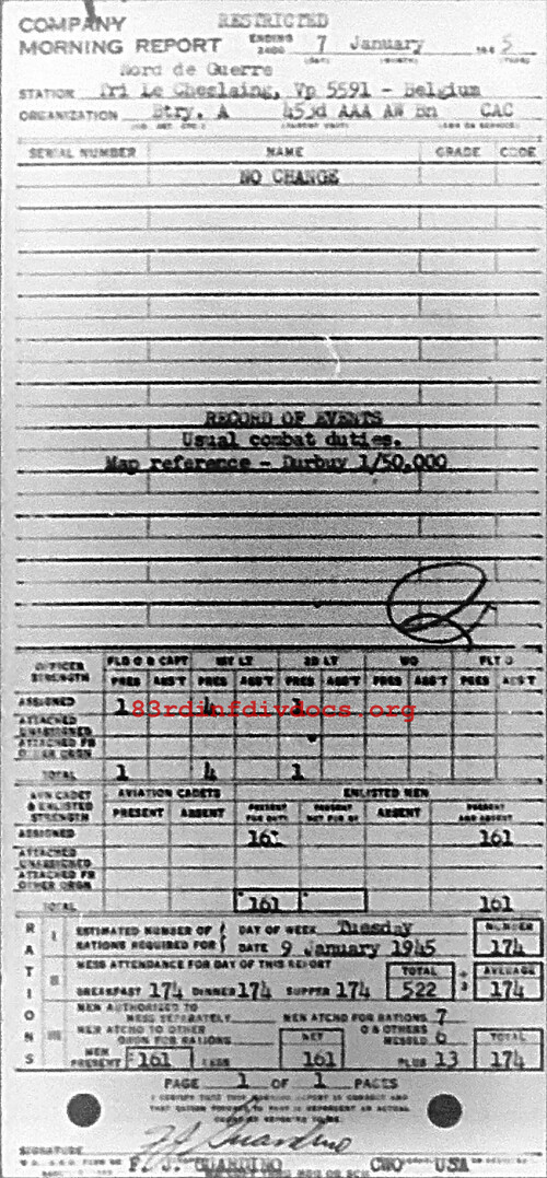 Morning report A/453AAA for January 7, 1945