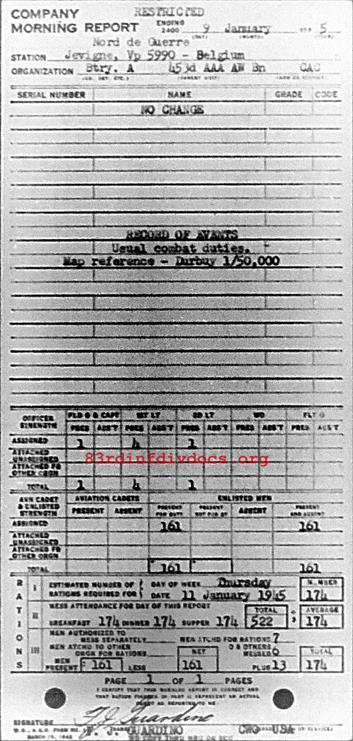 Morning report A/453AAA for January 9, 1945