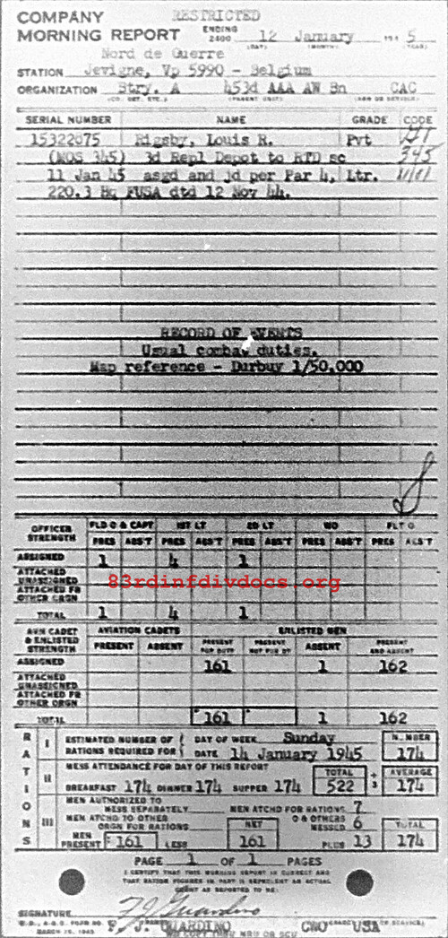 Morning report A/453AAA for January 12, 1945