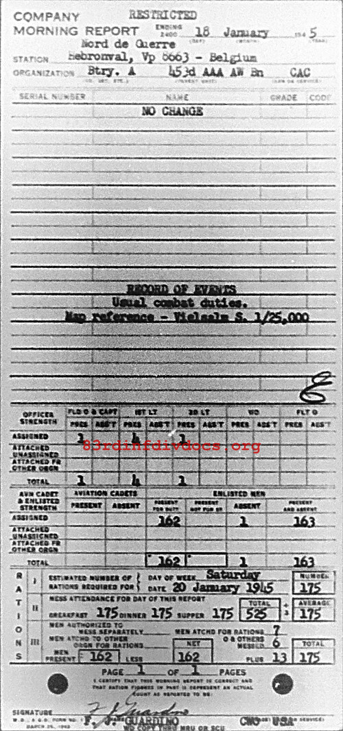 Morning report A/453AAA for January 18, 1945