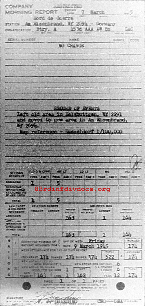 Morning report A/453AAA for March 7, 1945