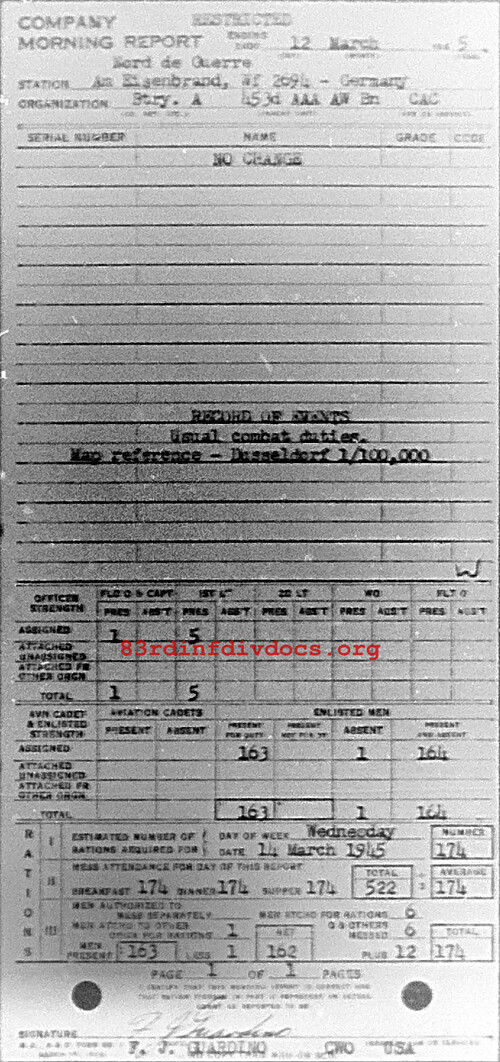 Morning report A/453AAA for March 12, 1945