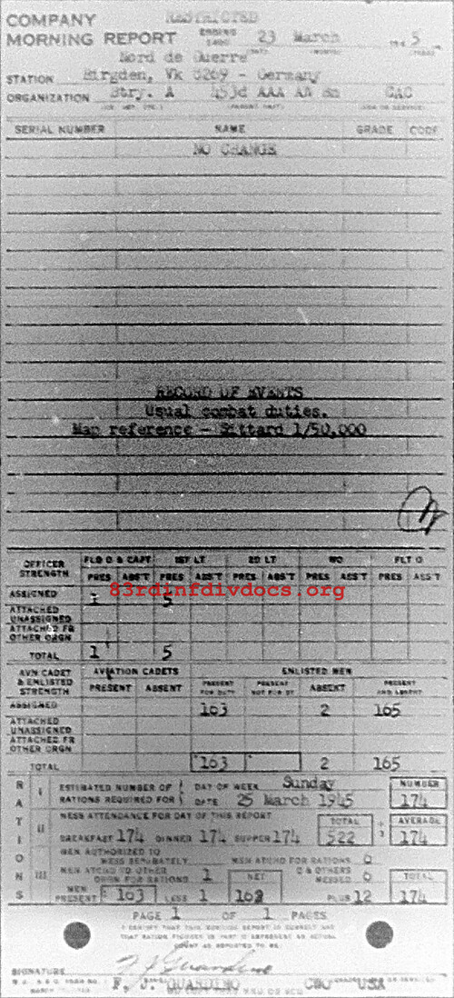 Morning report A/453AAA for March 23, 1945