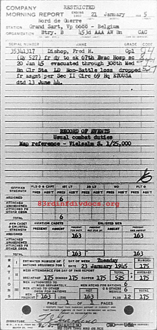 Morning report B/453AAA for January 21, 1945