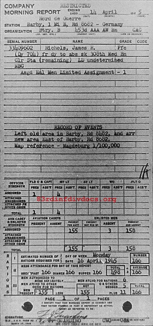 Morning report B/453AAA for April 14, 1945