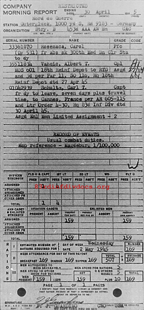 Morning report B/453AAA for April 30, 1945