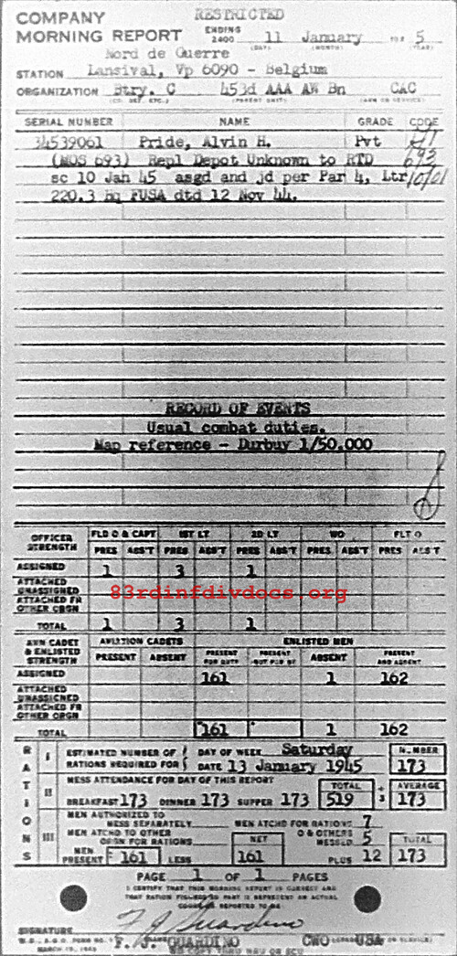 Morning report C/453AAA for January 11, 1945
