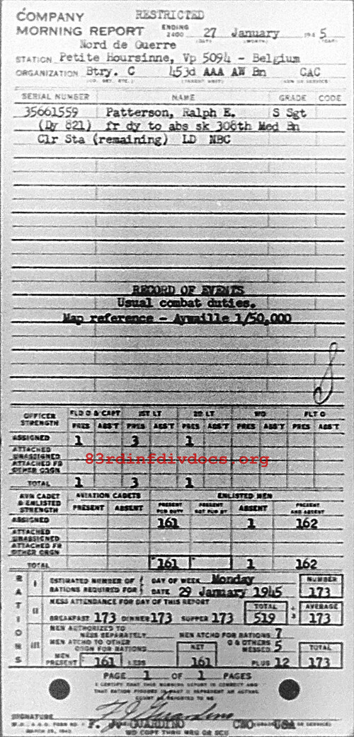 Morning report C/453AAA for January 27, 1945