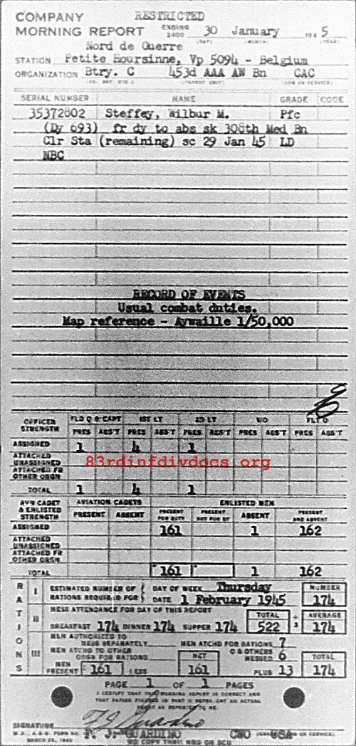 Morning report C/453AAA for January 30, 1945