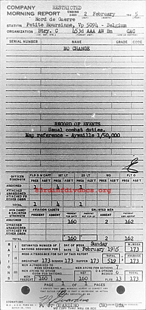 Morning report C/453AAA for February 2, 1945