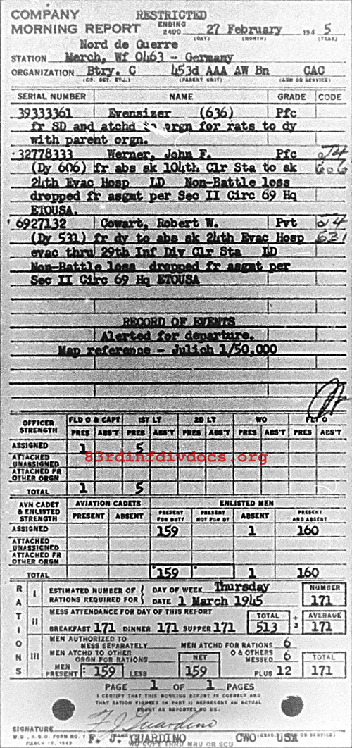 Morning report C/453AAA for February 27, 1945
