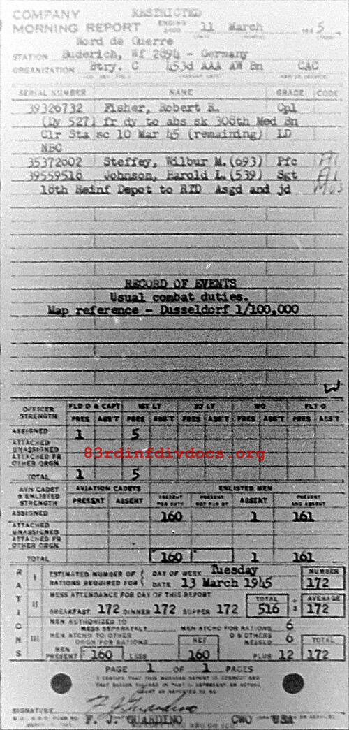 Morning report C/453AAA for March 11, 1945