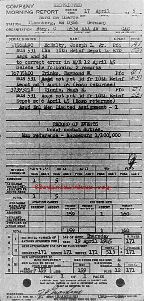 Morning report C/453AAA for April 17, 1945