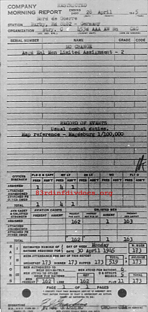 Morning report C/453AAA for April 28, 1945