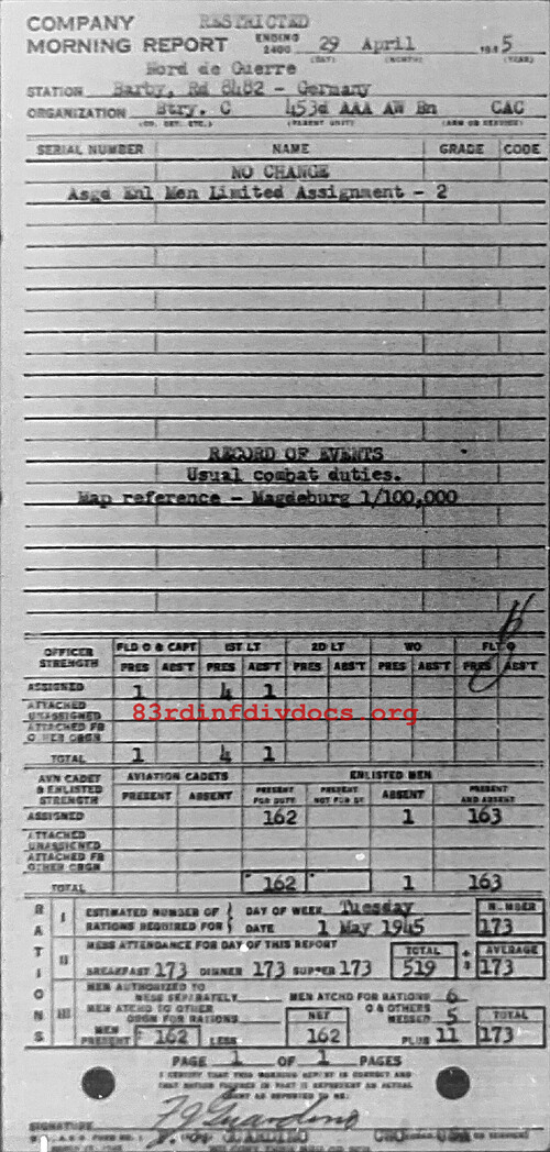 Morning report C/453AAA for April 29, 1945