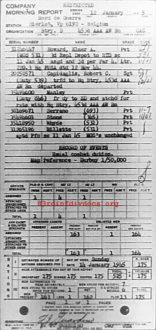 Morning report D/453AAA for January 12, 1945