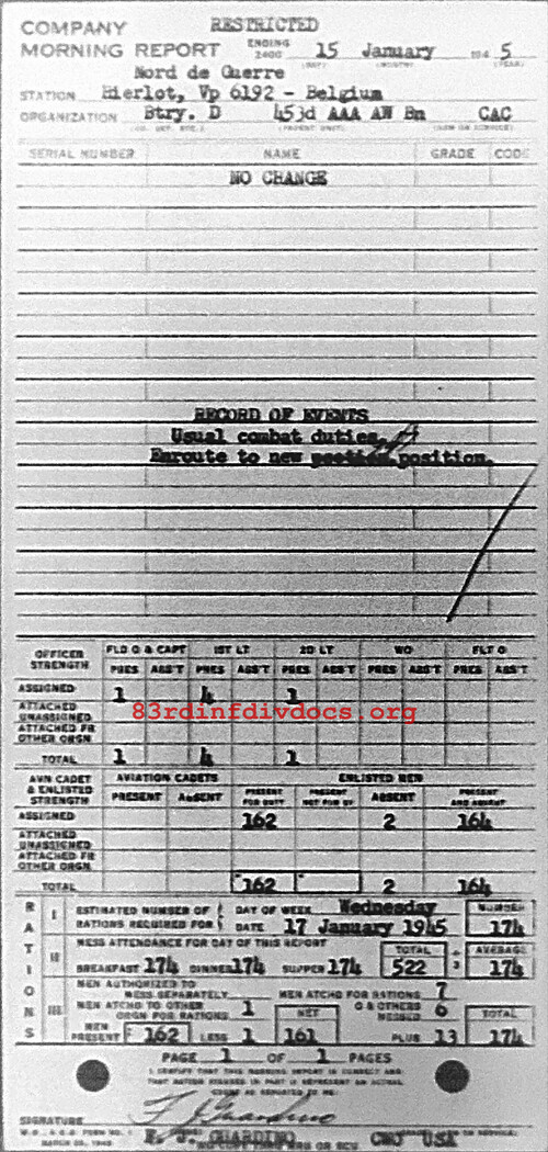 Morning report D/453AAA for January 15, 1945
