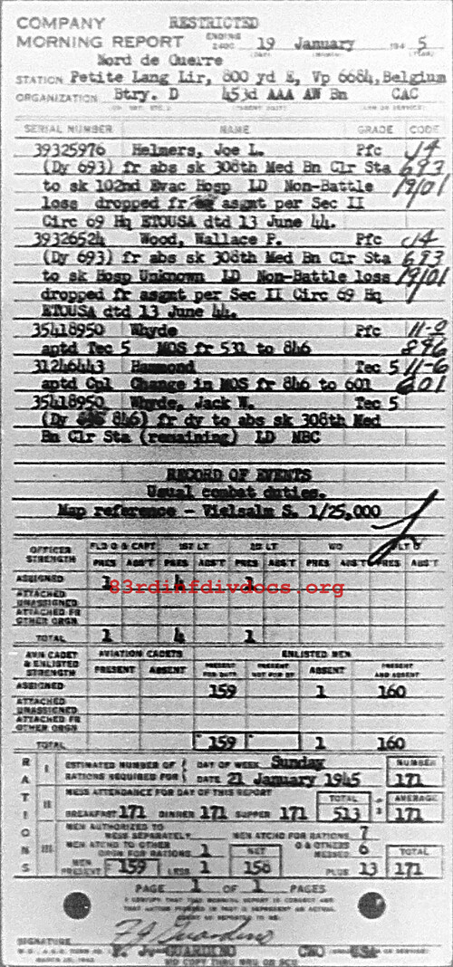 Morning report D/453AAA for January 19, 1945