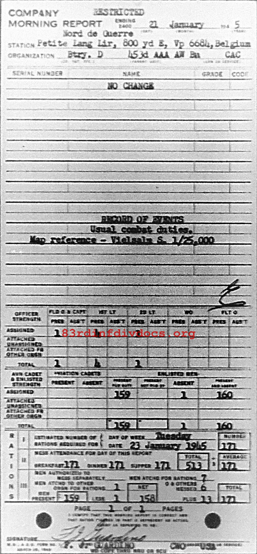Morning report D/453AAA for January 21, 1945