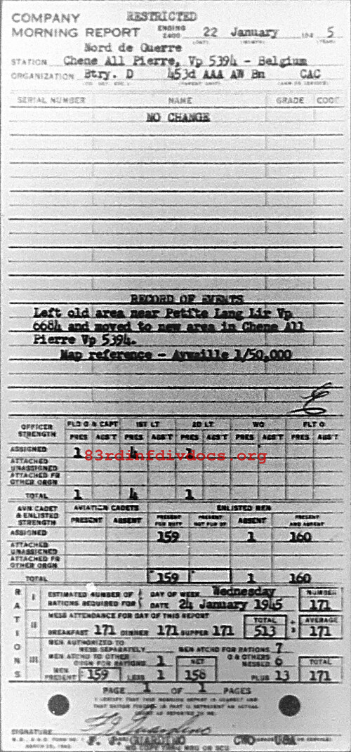 Morning report D/453AAA for January 22, 1945