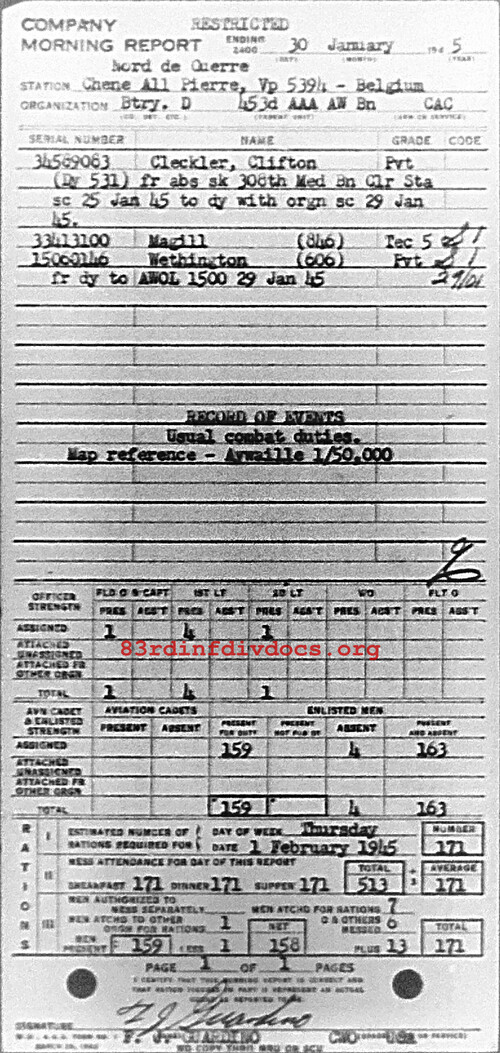 Morning report D/453AAA for January 30, 1945