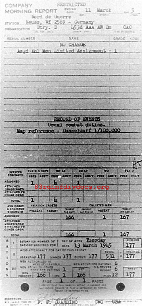 Morning report D/453AAA for March 11, 1945