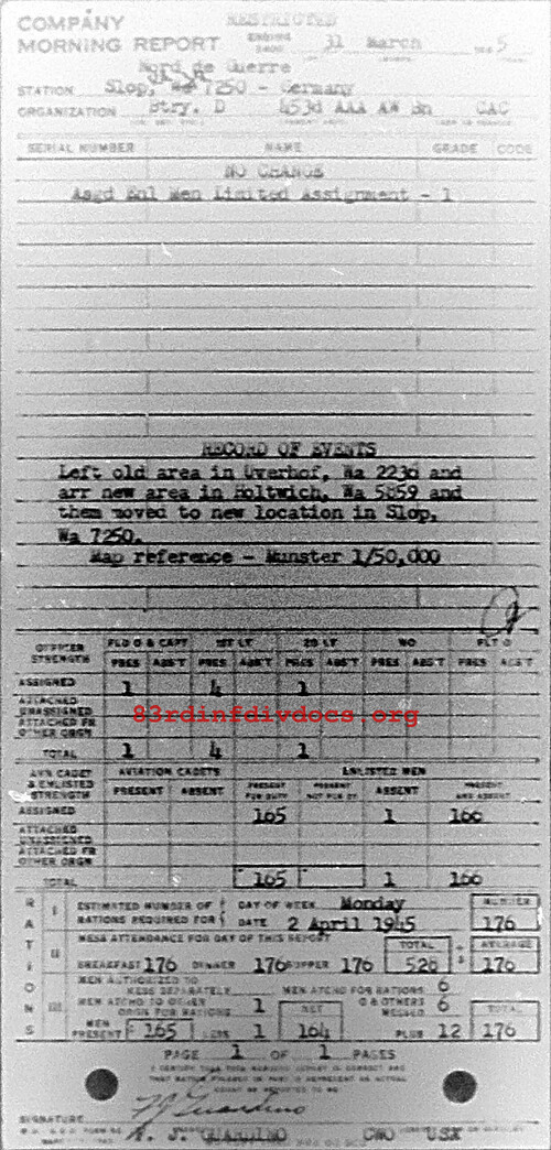 Morning report D/453AAA for March 31, 1945