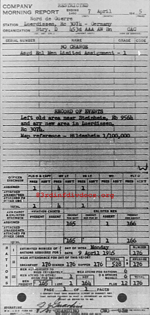 Morning report D/453AAA for April 7, 1945