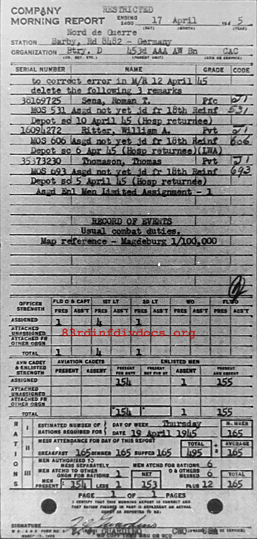 Morning report D/453AAA for April 17, 1945