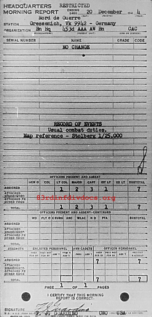 Morning report HQ/453AAA for December 20, 1944