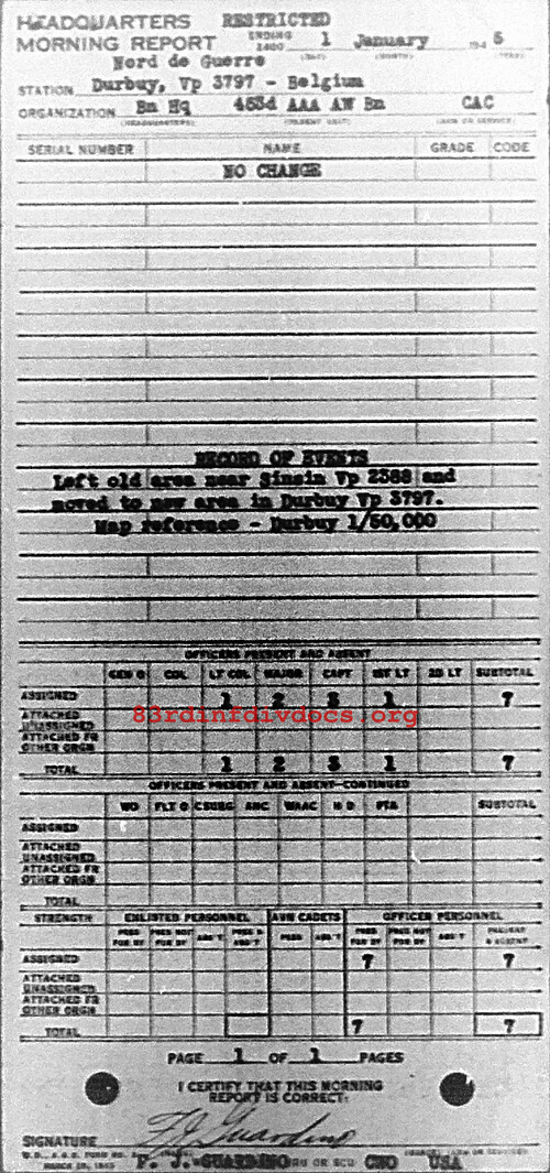 Morning report HQ/453AAA for January 1, 1945