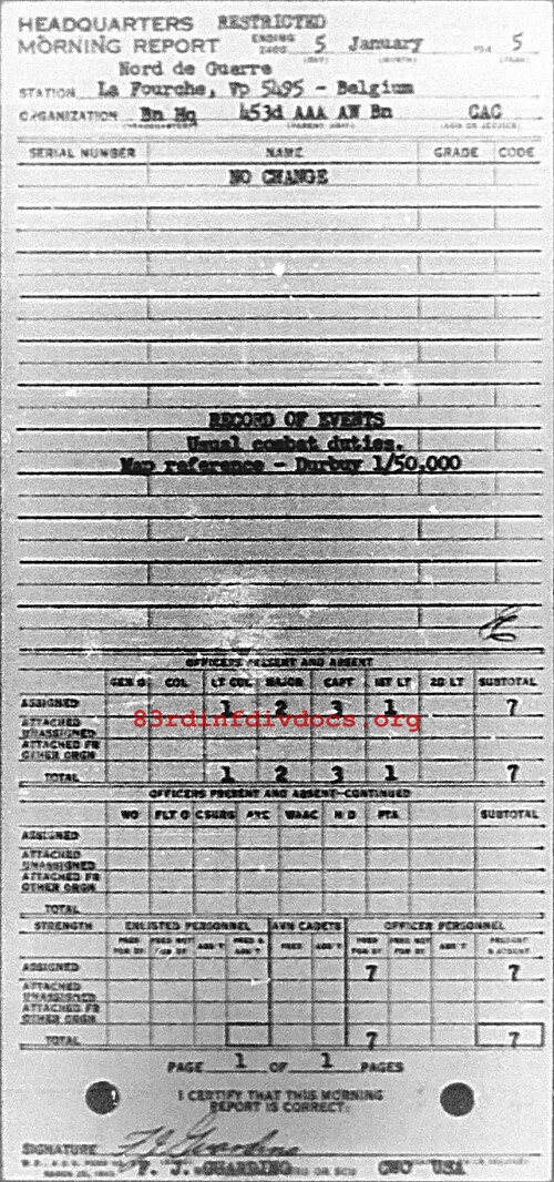 Morning report HQ/453AAA for January 5, 1945