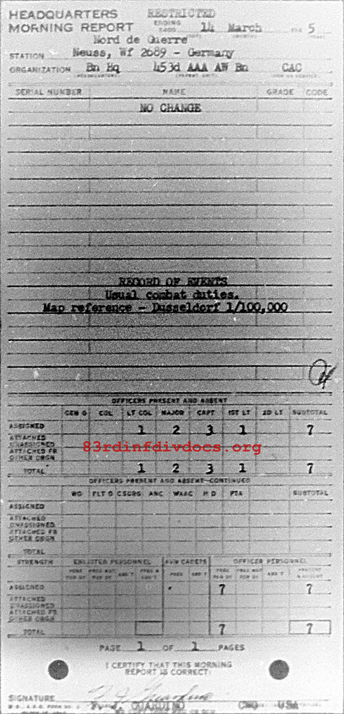 Morning report HQ/453AAA for March 14, 1945